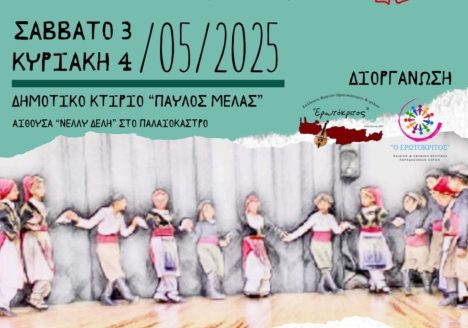 7 Μαΐου 2025Το παιδικό χορευτικό τμήμα του συλλόγου μας συμμετέχει στο Φεστιβάλ Παραδοσιακών Χορών «Ο Ερωτόκριτος»